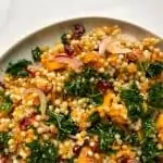 This is the perfect Fall salad to go with your meals! Think cranberries, squash, and pecans with pearl couscous. It is absolutely delicious.